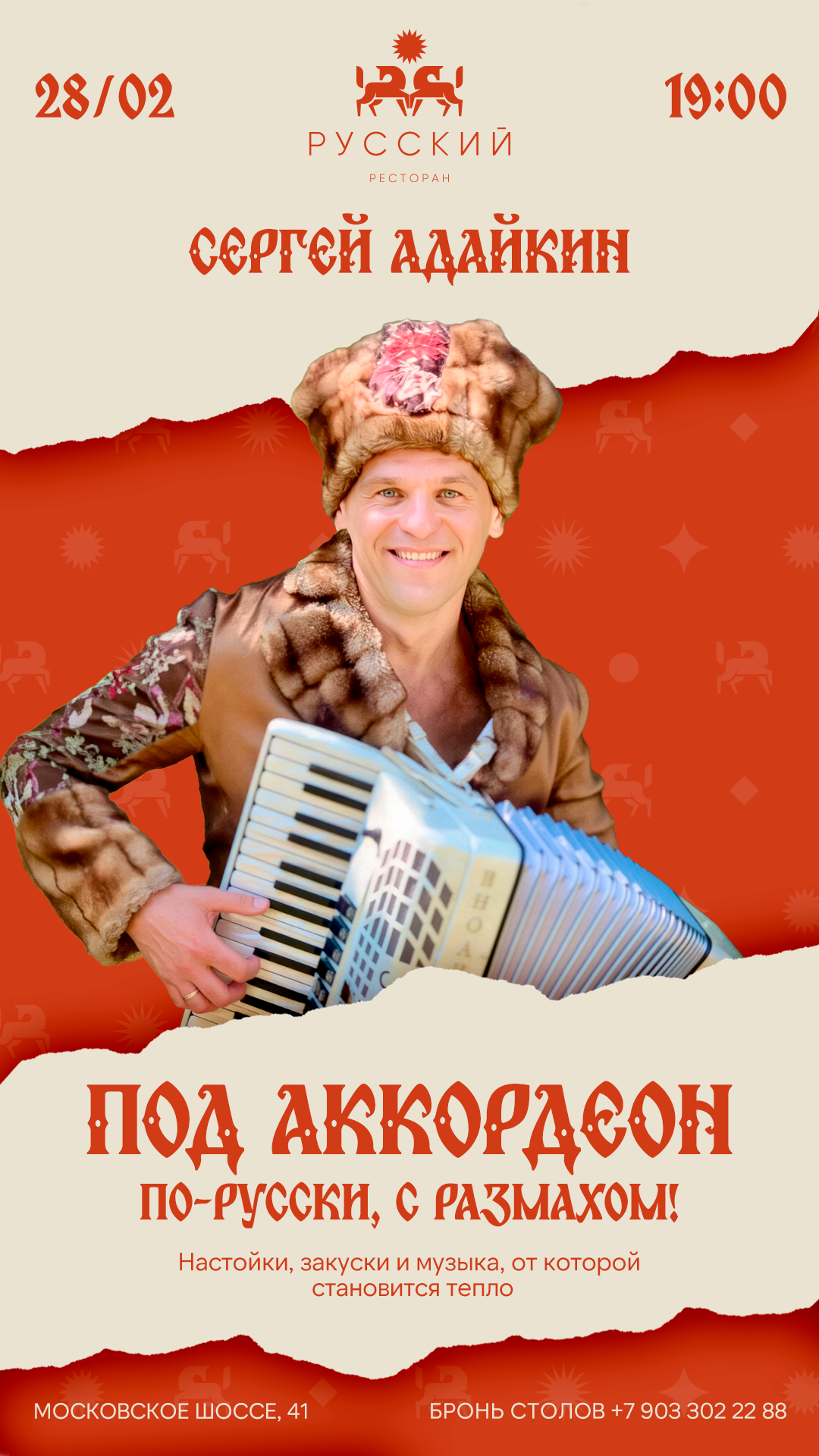 В этот вечер ресторан «РУССКИЙ» наполнится заводной музыкой аккордеона!