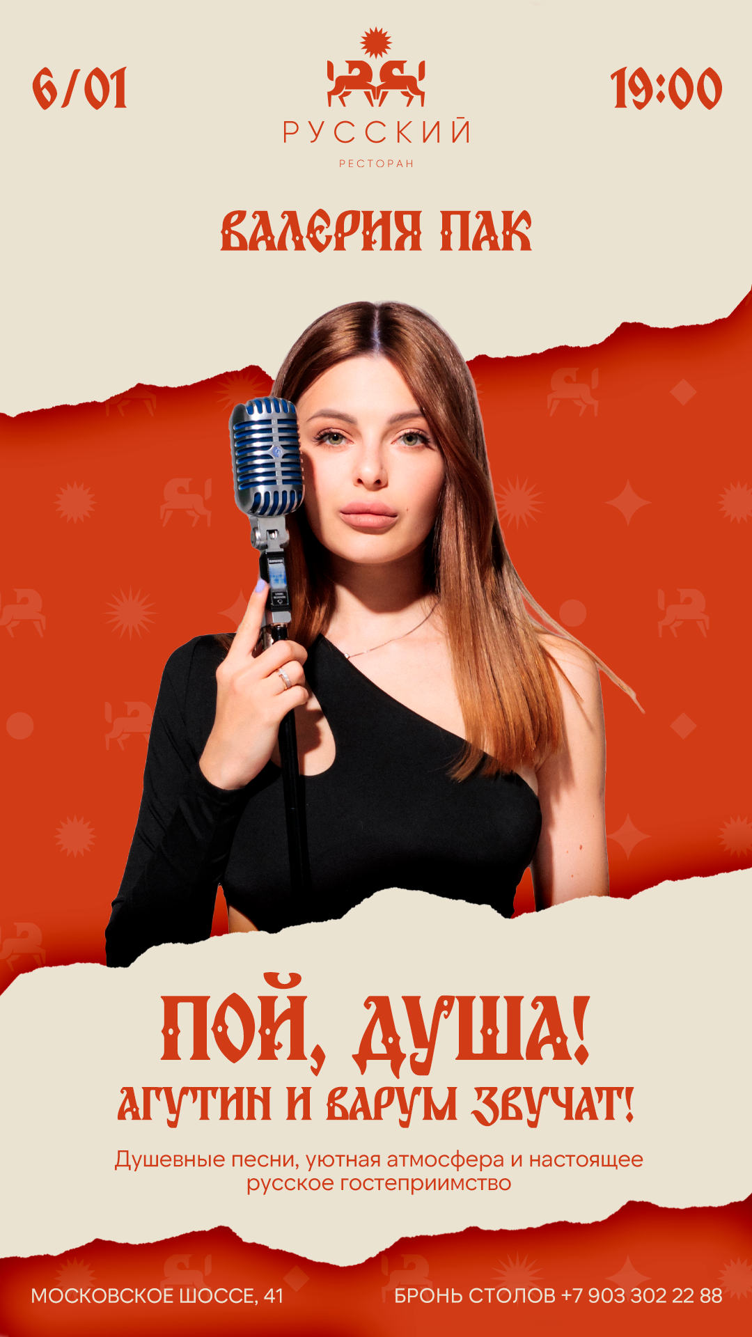 Очаровательная Валерия Пак подарит гостям тёплый музыкальный вечер с живым исполнением любимых песен.